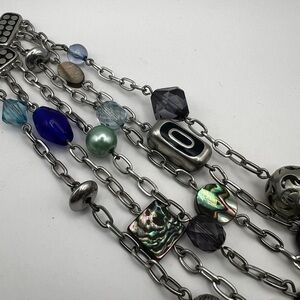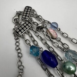 3 Strand Carnivale Silver tone medal and bead necklace. Longest length strand 18" with 2.5" extender