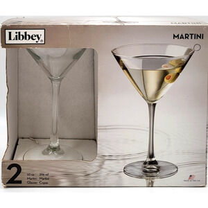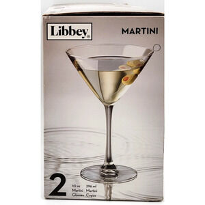 The product is a set of 2 Libbey Clear Long Stem Martini 10 oz Bar Drinking Glasses Stemware made in the USA. These classic round-shaped glasses are perfect for serving adults their favorite cocktails. The clear glass material adds a touch of elegance to any home bar or dining area. Each glass has a height of 7 1/4" and a width of 4 5/8", making them a stylish and practical addition to any kitchen or bar collection.