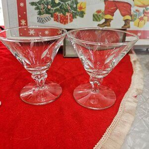 2 Libbey Simplicity Cocktail Wine Glasses 4.25" botanical leaves 5oz vtg midcent