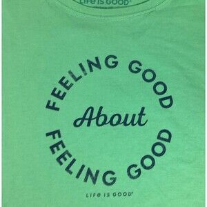 * Green "Feeling Good About Feeling Good" Graphic; Crusher Tee; Chest: 25-1/2" (laying flat, measured underarm to underarm, not doubled); Length: 27 (laying flat, measured from top of back collar to bottom hem)