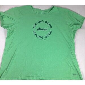 2 Life Is Good TShirt Womens XXL Green Feeling Good Orange Starburst Tee SS