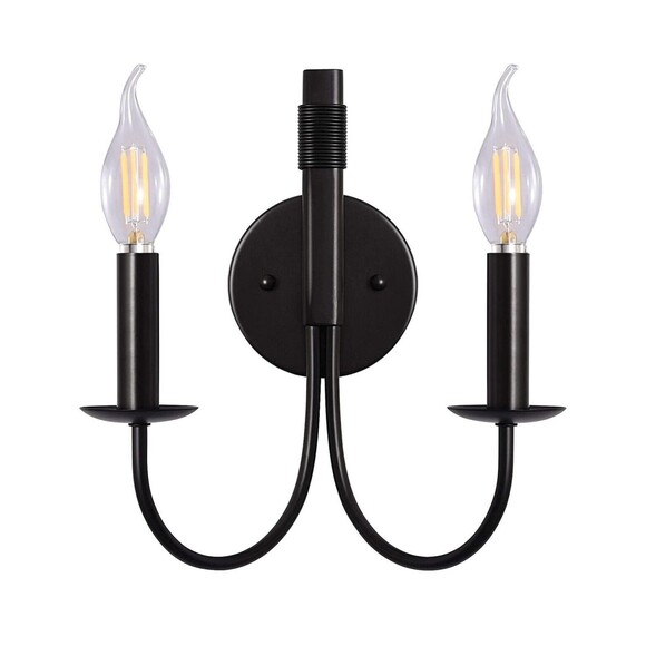 Modern Industrial Design: Inspired by antique lighting, this 2-lights black wall sconce showcases classic rustic style with a modern update. A circular backplate supports a pair of curved arms topped by candle-style sockets for an elegant look, lends a touch of traditionalism to any space.