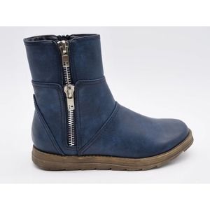 2 Lips Too Ankle Boots Womens 6.5 Blue Faux Leather Zipper Accent Too Bay Bootie