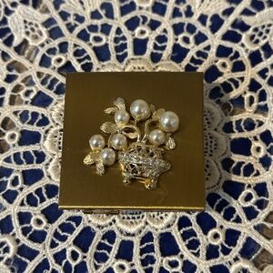 Absolutely Adorable Double Lipstick Case w/ flip up mirror decorated w/ pearls & rhinestones depicting a vase of flowers.