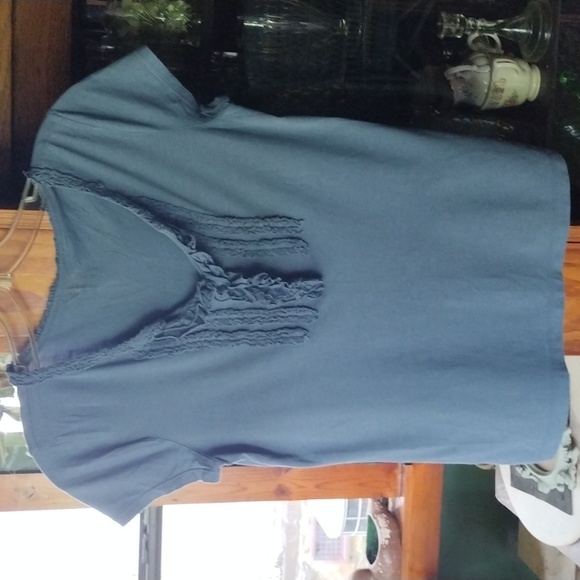 Cute, cute, cute size small ruffly Loft tops. Both like new. They have never been worn, so they have never been washed-but I am going to wash them. Very soft, comfy and lightweight. Length of both from top neck shoulder is 23"on both tops. Width of bottom of red is a lot fuller than the blue. Note the ruffles on the blue do not extend as far on one side.