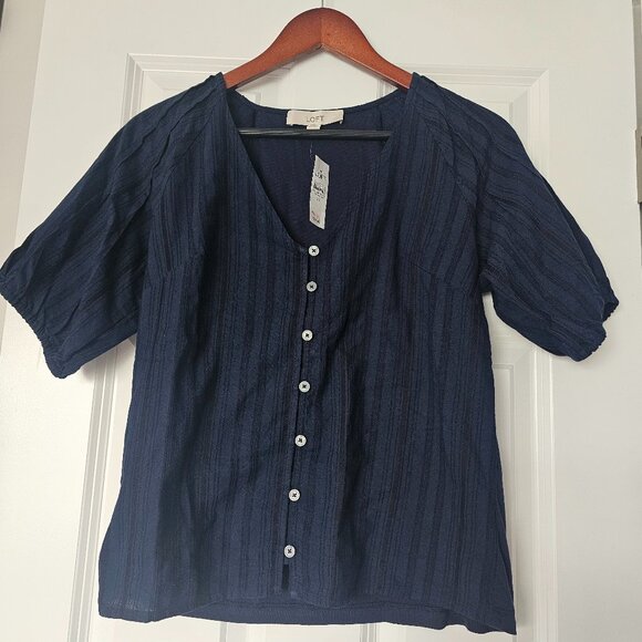Dobbly Bubble Sleeve Mixed Media Top in Deep Space size XS
