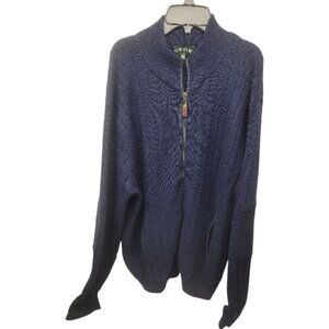 2 Lot Men's Orvis Sweaters Grandpa Cardigan Cashmere Wool Navy Elbow Patch sz L