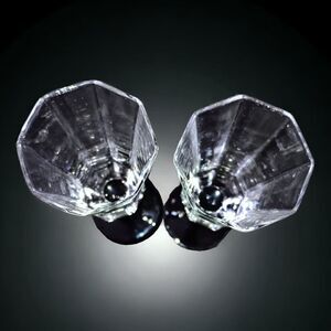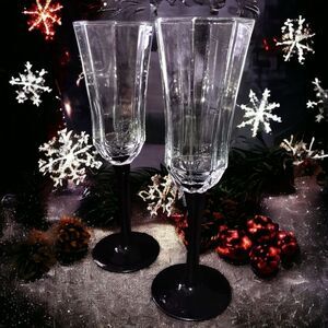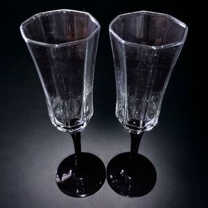 2 Luminarc Arcoroc Octime Domino Champagne Flutes Glasses France Set Black Stem.