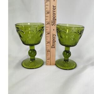 2 MCM Bartlett Collins St. Genevieve Green Wine Brandy Cordial Glasses