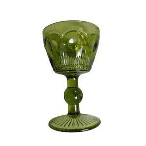Adorable vintage stemware! These olive green glasses with a bullseye and cane design are in great vintage condition with no chips or cracks. They were made by Bartlett Collins in the 1960s.