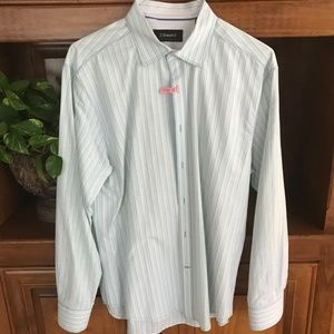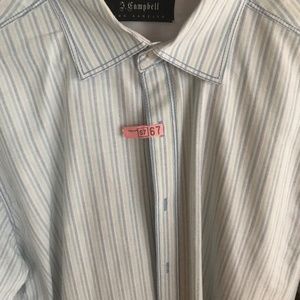 2 MENS DESIGNER SHIRTS – JEFFREY CAMPBELL (XL) & PRIVATE STOCK (15.5 x 34) – BOTH WORN ONCE & DRY CLEANED