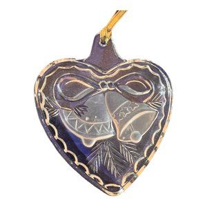 2 MIKASA Crystal Heart Shape Ornaments Relief Etched With Bells, Cardinal 3.5"