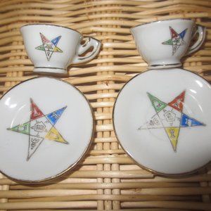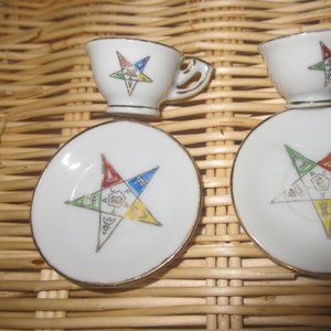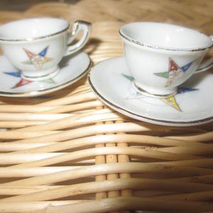 2 MINI PAIRS VINTAGE Masonic Eastern Star Ceramic dish Saucer tea cup DOLLHOUSE