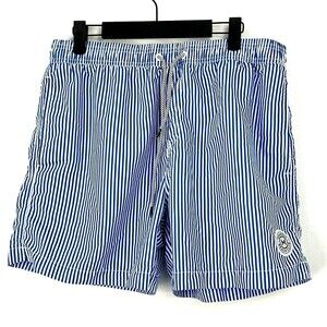 2 Maamgic Mens L Swim Trunks Blue Shark Stripe Shorts Liner Pocket 5 Inch Inseam