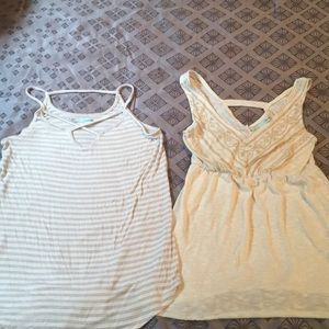 1st one -Cream and Gray striped. 2nd one-Cream and Tan textured top. Both new and never worn. Both small.