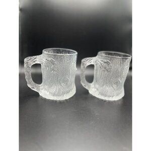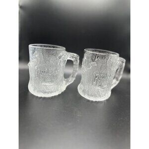 Set of 2 This McDonald's Flintstones Glass Mugs are clear frosted cups that are perfect for any fan of restaurants and fast food advertising collectibles. Made in the United States in 1993, these original pieces features the iconic characters of the Flintstones and is a great addition to any collection. Some calcification in the bottom of one mug but could be removed with a decalcifying solution. The mugs are made of high-quality glass and has a unique design that is sure to impress. It is perfect for use at home or in the office, and is sure to be a conversation starter. Don't miss out on the opportunity to own these rare and original pieces of McDonald's Flintstones Glass.