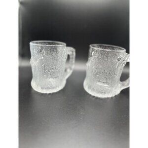 2 McDonalds Flintstones Glass Mug Cup Clear Frosted