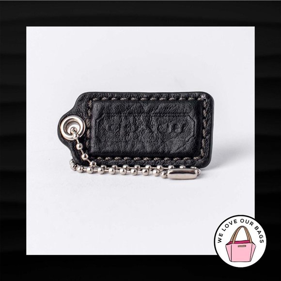 2" Medium COACH BLACK LEATHER KEY FOB BAG CHARM KEYCHAIN HANGTAG TAG