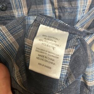 Both are in excellent condition. Comfortable, casual, breathable cotton blends. Both measure 23 inches pit to pit.