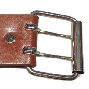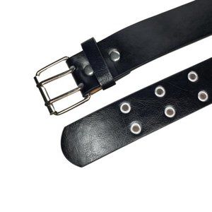 2 Unisex Men's Women's Genuine Leather Two Prong Double Row Holes Casual Plain Belts