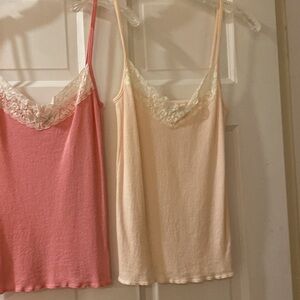 2 Micheal Stars classic lace detail camis. One bubblegum punk, the other a pale nudie pink.