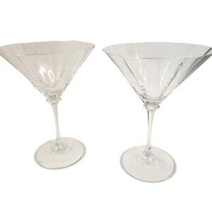 2 Mikasa Stephanie Martini Cocktail Glasses Ribbed Optic Bowl Smooth Stem
