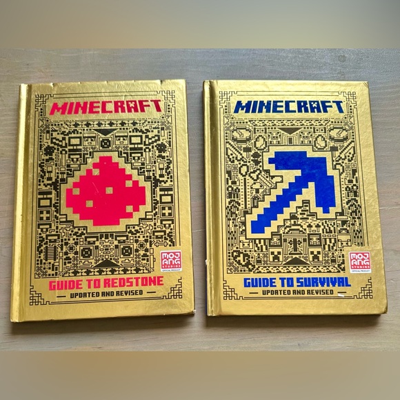 Explore the world of Minecraft with these updated and revised guides. Featuring a striking gold cover, these books are perfect for both beginners and experienced players. Dive into the Guide to Redstone and the Guide to Survival to enhance your gaming skills. In excellent, used condition. The edges look slightly worn on the cover but otherwise in like new shape. See pictures for details.