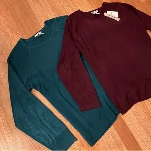 Raglan sweater with rib sleeves, perfect condition. Dark purple/burgundy and Teal, purple is NWT, teal has been worn and washed once.