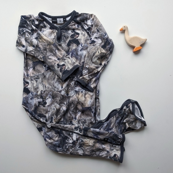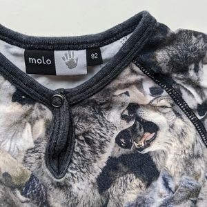 Very cool wolves print Molo PJs. Molo is from Copenhagen, Denmark. No marks or stains-worn only a handful of times with some wash wear.