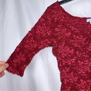 2 Much LA Top Lace Floral Y2K Vintage Quarter Sleeve Pull On Top Scoop Neck