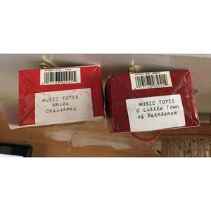 2 Musical Note Totes Plays - White Christmas, O Little Town, Christmas Ornaments