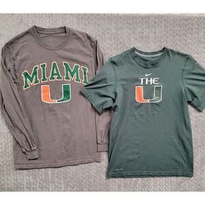 2 NCAA Miami Hurricanes Green T Shirt Size Small Nike The U Football Dri-Fit