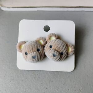 (2) NEW Flocked Bunny Rabbit & Corduroy Bear Stud Earrings Cute, Funky 3D