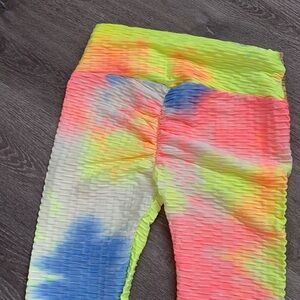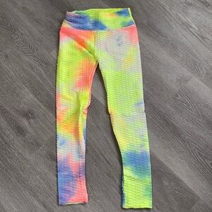 2 NEW TIE DYE LEGGINGS size M , purple/ blue, bright neon yellow , pink