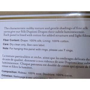 Set of 2 Pottery Barn silk dupioni pole top 50" x 96" curtain panels. Parchment color. Fully lined. New in package. Can be hung with rod pocket or with drapery hooks. NOTE~ only 1 set of drapery hooks included.