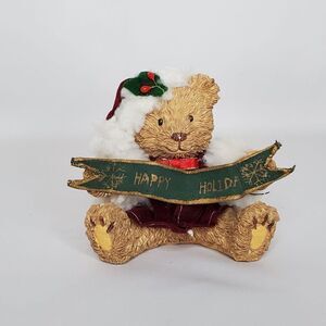 2 NEW Happy Holiday Merry Christmas Teddy Bear Resin Figures 4" H X 5" W