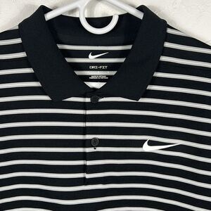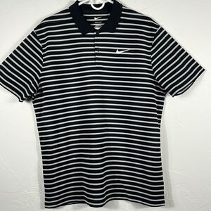⛳️🏌️NIKE DRI-FIT GOLF Polo Shirt Black Striped Short Sleeve (plus throwing in another Sz Lg Nike Golf Polo that has few spots on it).