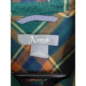 The Natural Reflections Tops are women's flannel button-up shirts in size Large, perfect for a casual country cabincore look. Made from 100% cotton flannel, these tops feature a plaid pattern in a multicolor design. With a collared neckline, long sleeves, and button closure, these tops are ideal for the winter, fall, and spring seasons. The regular fit and reflective features make them both stylish and comfortable for everyday wear. Perfect for those who appreciate nature-themed fashion in a cozy flannel fabric.