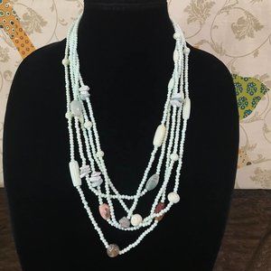 Two new without tags bone and natural polished agate stone multi strand beaded necklace lot from India.