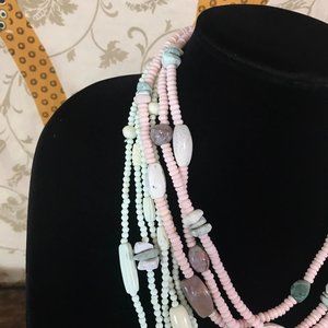 2 Necklace Lot Dyed Bone Agate Stone Boho Bohemian Multi Strand Necklaces India