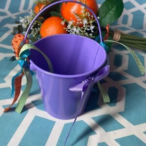 2 New! 4” Miniature Gift Buckets NWT Gift Pail Basket Handle Spring Easter Pink Purple Ribbons