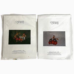 2 New Candamar Designs Cross Stitch Kit Indians and Pumpkins Scarecrow Halloween