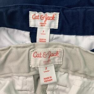 2 New Cat & Jack Girls 7 Cotton Blend Adjustable Waist Straight Khaki Navy Pants