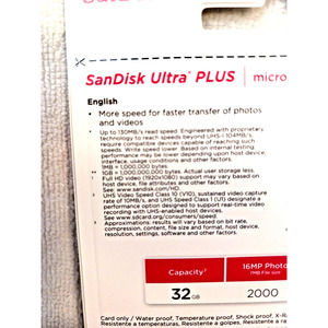 2 New! SanDisk Ultra Plus 32GB Speed 130, microSDHC UHS-1 Card w Adapter.