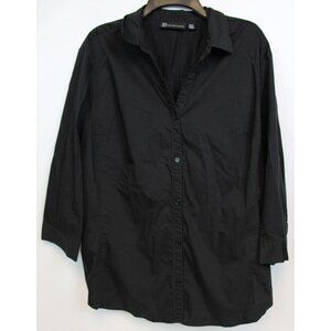 2 New York & Company Button Down Shirts sz XXL Blue Black Simple V-Neck