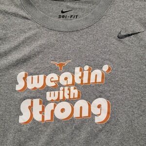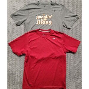 2 Nike Dri-Fit Legend T-Shirt Mens Size Medium Gray Red Texas Longhorns. Condition is Pre-owned. Still in really good shape. No rips or tears. There is a little mark on the back left sleeve of the gray shirt. Take a look at the pictures (zoom in) and measurements please. Thanks for looking. Enjoy the rest of your day. Shipped with USPS First Class