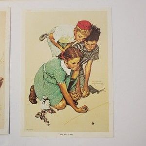 2 Norman Rockwell Lithographs 1972 Golden Days Knuckles Down Orgnl Envelope 5x7