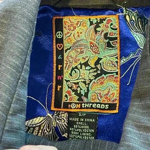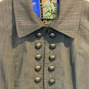 2 OH Threads | 2 Old Hippies | Military Style Jacket,Gray Pinstriped, Size Small