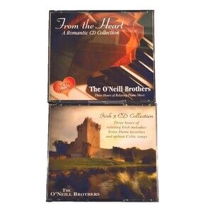 This product is a lot of two CDs by the O'Neill Brothers, featuring a collection of heartwarming and Irish music. Each case contains 3 CDs, providing a total of 6 CDs in the set. The CDs come in CD format and are released under different record labels. Perfect for fans of traditional Irish music and the O'Neill Brothers, this collection captures the essence of heartfelt melodies and Irish tunes.
