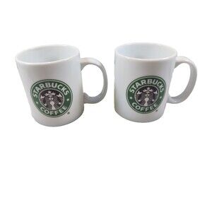 Introducing a pair of exquisite Starbucks 9oz coffee mugs featuring the iconic mermaid logo. These original mugs were created in 2005 and are in great condition. They are perfect for enjoying your morning coffee or tea. The white color and logo design make them a great addition to any Starbucks or coffee mug collection. These mugs were made in China and offer a unique piece of Starbucks history. Don't miss out on the chance to own these beautiful mugs!